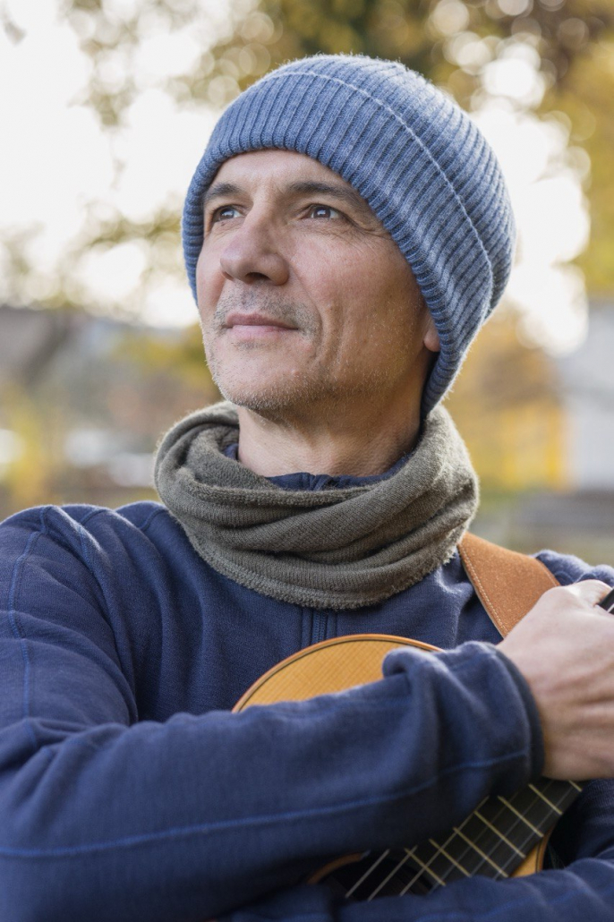 Martin Schlögl spielt und singt Gitarrenstücke aus eigener Feder